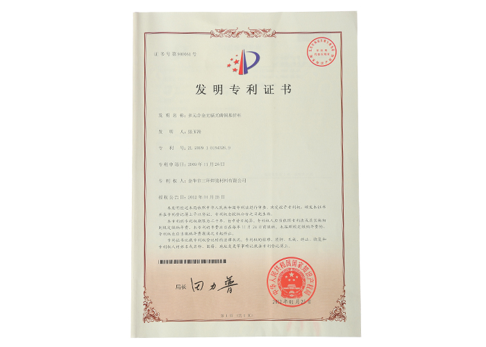 公司創建于1997年,年生產能力2000噸,是國內較大的銀釬料及磷銅釬料生產企業之一,生產規模、質保能力、新產品開發能力及市場信譽均位列前茅。公司在釬料行業率先通過ISO9001:2000國際質量管理體系和ISO14001:2004環境管理體系認證的企業,是重點高新技術企業、金華科技園骨干企業、經濟密度十強企業、清潔生產企業、金華市企業技術中心,也是中國焊接學會會員單位,并且擁有《中華人民共和國進出口企業資格證書》。 更 多